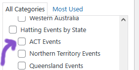 Eg if you are in ACT then you would select “ACT Events“